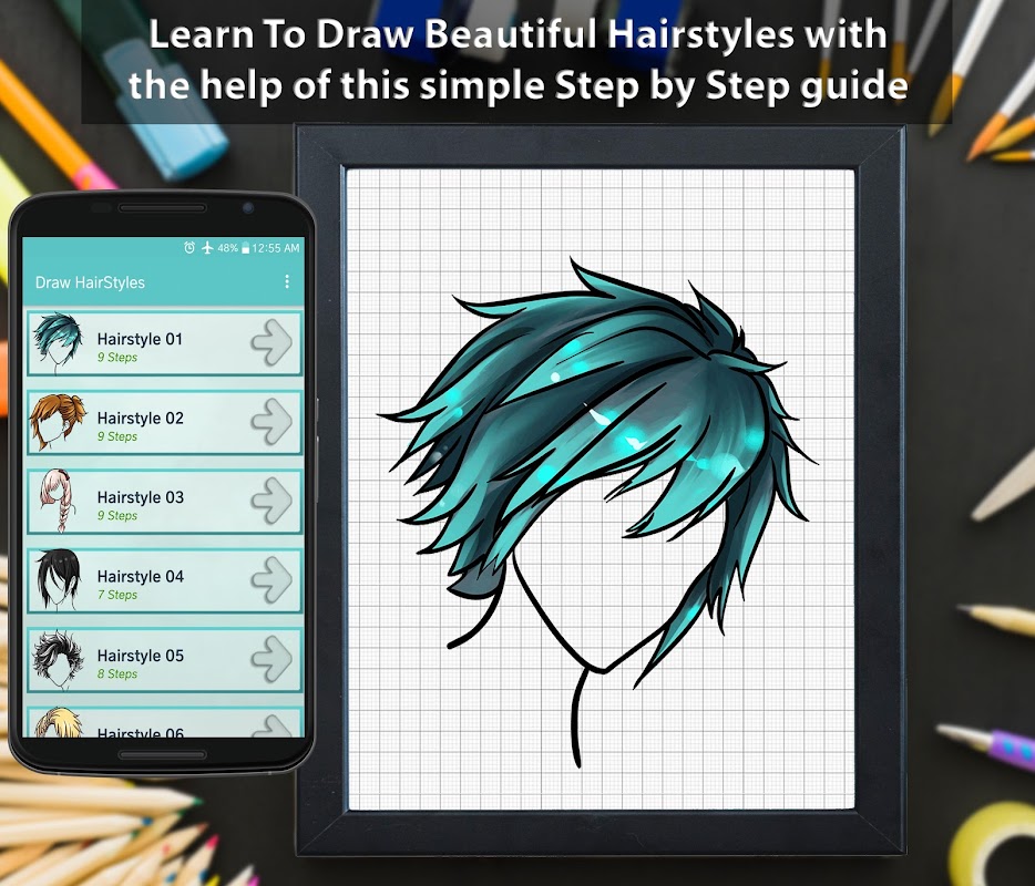 Learn to draw Beautiful Hairstyles is a step by step guide to learn and draw beautiful Hairstyles. We have collected the best Haircut drawing tutorials to draw beautiful Hairstyles easily. This application will help you make sketches of beautiful Hairstyles with a detailed step by step drawing tutorial & than you can color your sketch with this drawing and coloring app so you can draw beautiful Haircuts and change your look in real life by applying these hairstyles on yourself. We've added so many Beautiful Haircuts drawing lessons for children and grown ups.