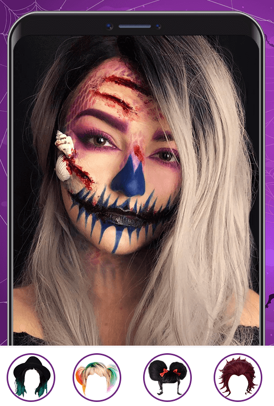С нашим приложением идей макияжа на Хэллоуин для девочек и мальчиков вы можете испытать некоторые интересные и страшные маскировки. Например, если вы хотите выглядеть как призрак, все очень просто, откройте это приложение, выберите свою фотографию и начните выбирать самый удивительный костюм призрака.