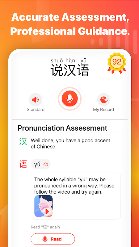 ● Практикуйте и проверяйте китайское произношение пиньинь с помощью лучшей в мире китайской технологии оценки голоса из Китая.