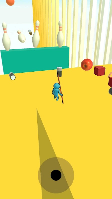 Ударьте палкой по предметам на земле и бросьте их в целевую точку.