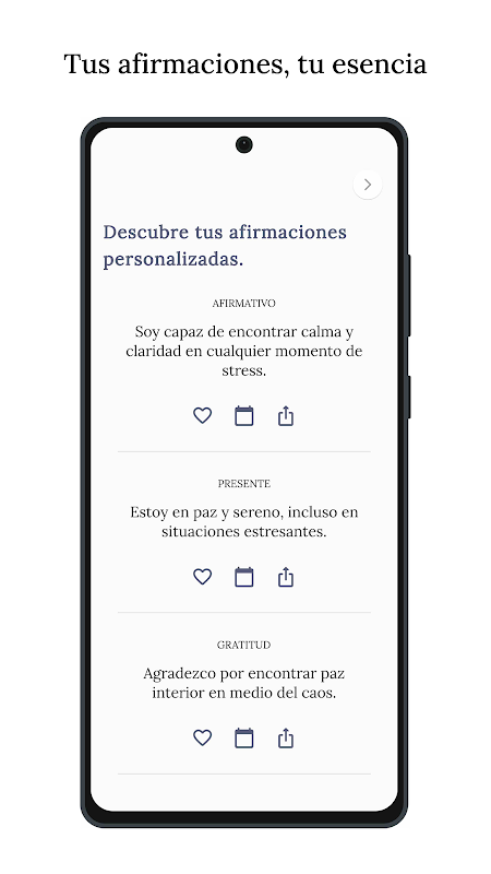 Интуитивно понятный интерфейс: легко перемещайтесь по приложению и откройте для себя мир аффирмаций, ожидающих вас.