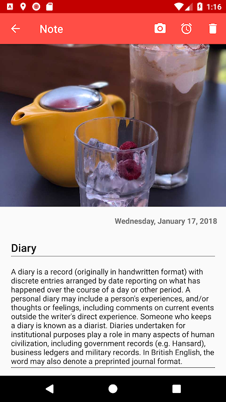 Добавить заметки на любой день в календаре. Вы можете добавить текст или использовать камеру телефона для съемки фотографий.