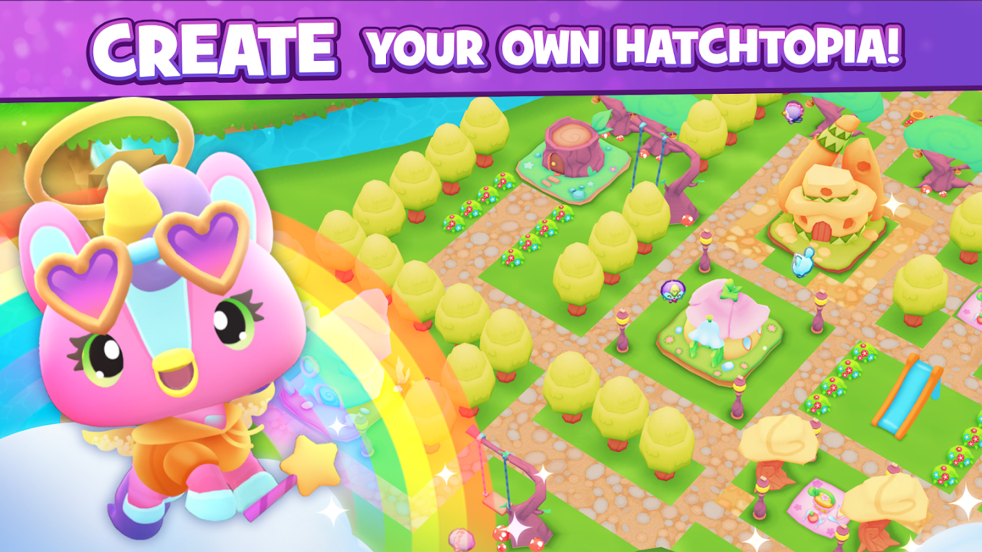 Найдите место для постройки Hatchi-домика и выберите Hatchimal, который будет в нем жить. Украсьте свой мир до мельчайших деталей. Постройте свою Hatchtopia и продумайте каждую мелочь, как будто перед вами виртуальный игровой набор! Воплотите самые смелые мечты и создайте собственную Hatchtopia — другой такой не будет ни у кого!
