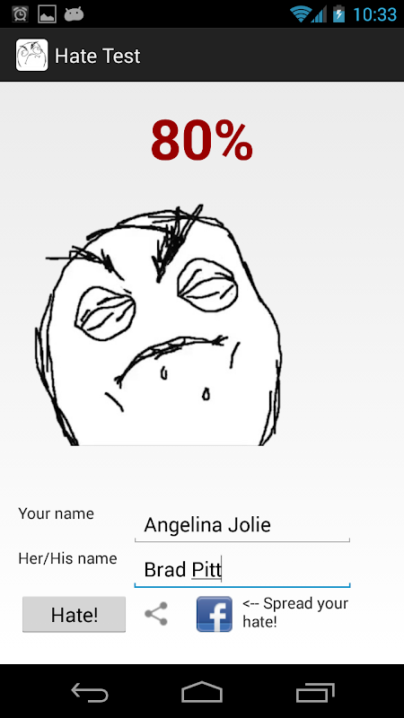 Hate Test is the app that allows you to calculate and spread your precious hatred!