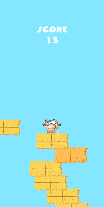 Нажмите на экран, чтобы Свинья и все его Друзья прыгали все больше и больше блоков сена, добавленных в стек. Можете ли вы сделать так, чтобы стог сена доходил до луны?