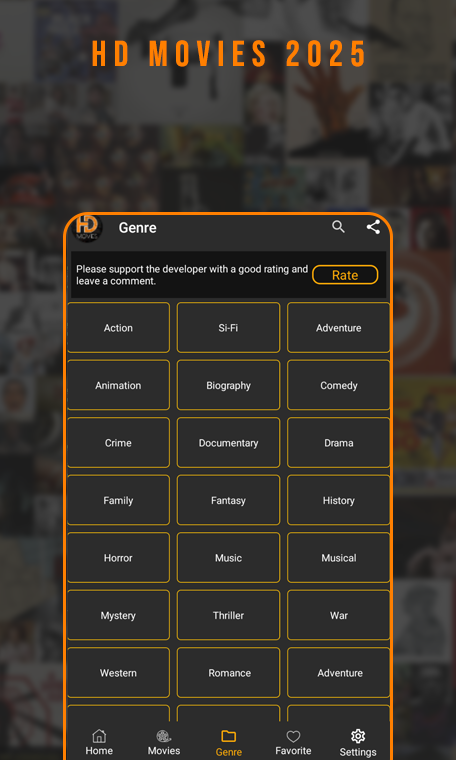 Наслаждайтесь безупречным просмотром фильмов с HD Movies 2025, включающим трейлеры к фильмам и интуитивно понятный пользовательский интерфейс.