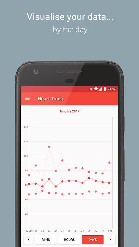 Heart Trace автоматически проверяет частоту сердечных сокращений через определенные промежутки времени с помощью умных часов Android Wear и синхронизирует данные о частоте пульса с Google Fit. Вы можете просматривать частоту пульса по дням, часам или минутам или в виде сводки за день.