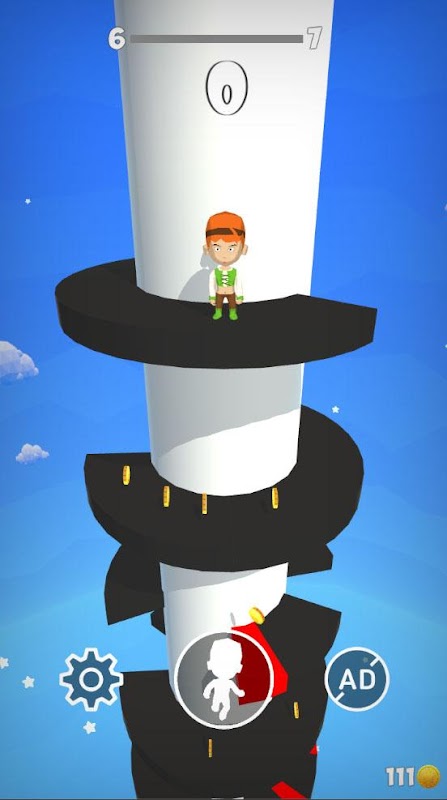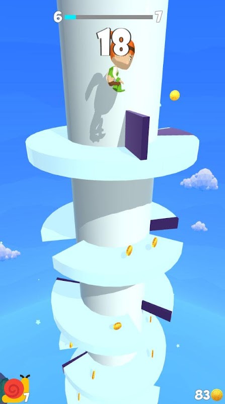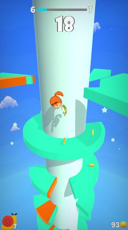 Проведите пальцем по экрану, чтобы бежать влево или вправо и провалиться сквозь спиральную башню! Сохраняйте спокойствие и идите как можно дальше!