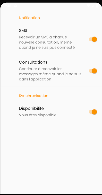 - de prendre une consultation a distance avec un medecin (teleconsultations) Le jour du rendez-vous il est notifié ou alors quand un médecin accepte il est notifié par SMS