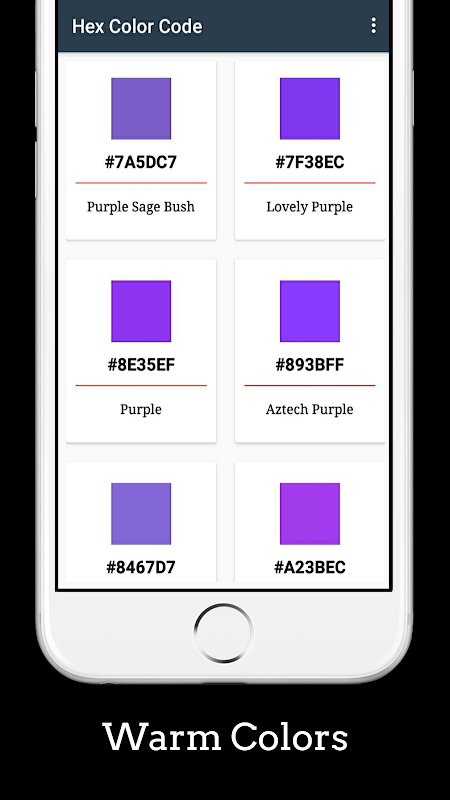Приложение Hex Color Code очень важно для разработчика. В этом приложении так много цветового кода. вы легко получите шестнадцатеричный цветовой код из этого приложения. Шестнадцатеричные значения цвета также поддерживаются во всех браузерах.