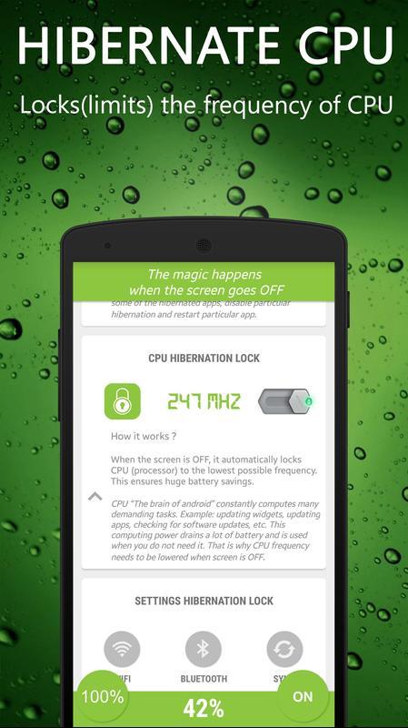 Hibernate forcibly stops the power consuming apps and settings to execute their processes to save and improve battery life of your android device.