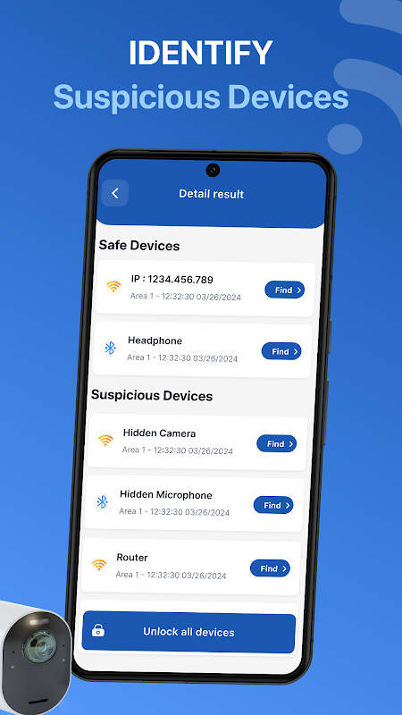 📲 Оповещения в реальном времени: будьте в курсе с помощью мгновенных уведомлений с помощью звука, вибрации или визуальных сигналов при обнаружении потенциальных скрытых устройств, что позволяет вам немедленно принять меры.