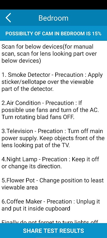 Другой раздел этого приложения содержит советы для вашей безопасности, что некоторые плохие люди тайно разместили секретную камеру в приватных местах, например в ванной.