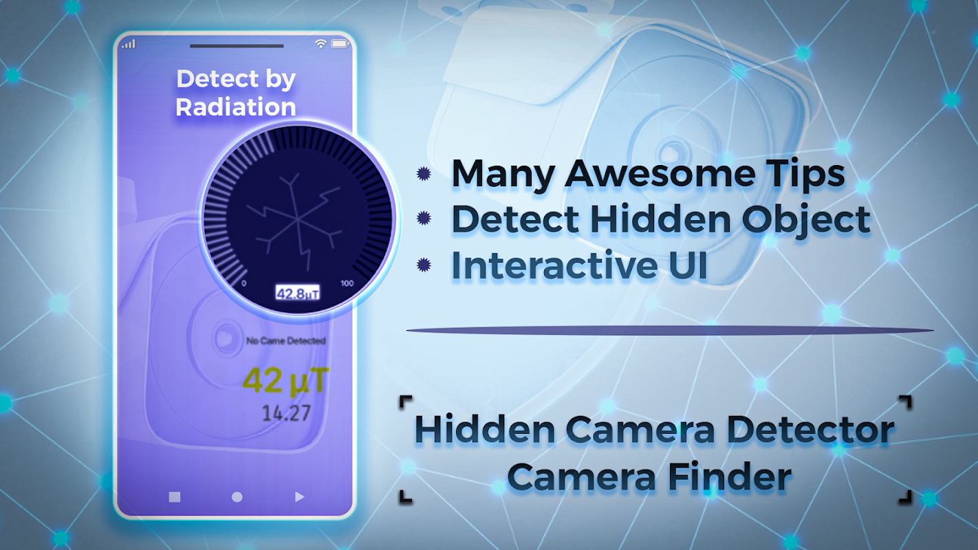 Мы представляем приложение для поиска скрытых камер для защиты и защиты вашей конфиденциальности. Вы можете использовать наше приложение для обнаружения скрытых камер, чтобы найти скрытую камеру вокруг вас, например, в туалете, гостинице, а также в других местах. В настоящее время плохие люди повсюду, которые устанавливают скрытую камеру в раздевалке торгового центра, поэтому для этой цели используйте наше лучшее приложение для обнаружения скрытых камер.