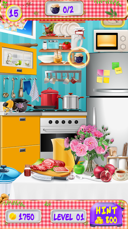 🍴 Вы должны внимательно рассмотреть все уголки кухни и постараться найти все предметы перечисленные в нижней части экрана.
