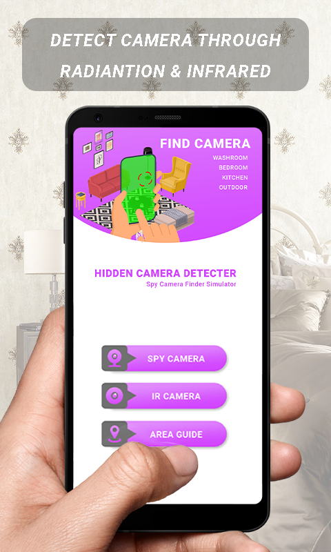 камера находится в вашей комнате, это шпионское приложение начинает издавать звуковой сигнал, когда ваш телефон начинает издавать звуковой сигнал или показывает красный свет, вы должны знать, что скрытые устройства размещены в вашей комнате, это шпионское приложение должно обнаруживать все типы скрытых камер и шпионских камер.