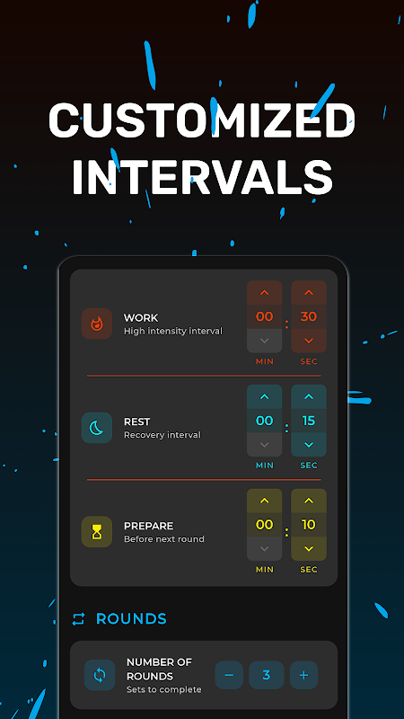 - Гибкие периоды работы и отдыха. Установите идеальное время для вашего уровня физической подготовки.