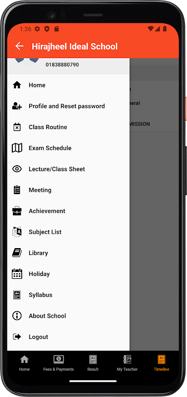 Android-приложение Smart School для Hirajheel Ideal School, BP