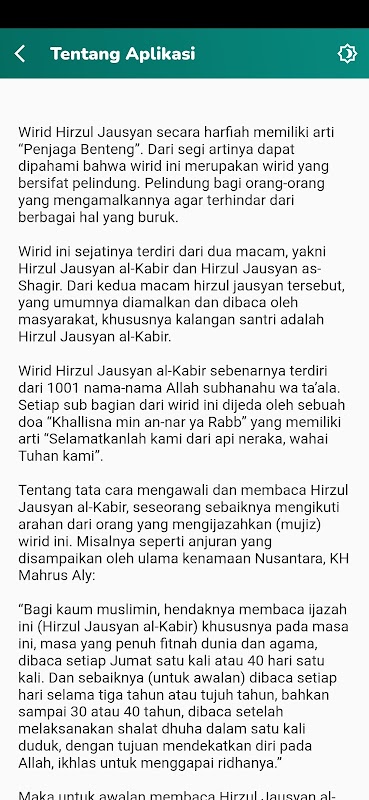 Хирзул Джаусян Кабир, приложение, содержащее список работ шейха Махруса Али Лирбойо Кедири. Этот APK-файл можно использовать офлайн благодаря простому в использовании интерфейсу.