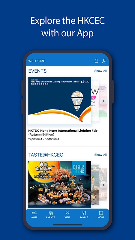 Исследуйте HKCEC с помощью нашего приложения. Получите максимум от своего визита и не пропустите интересующие вас мероприятия и наши предложения по питанию.