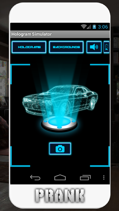 Голограмма экрана шутка тренажер - экрана в виде голограммы в шутку! Увидеть, как на экране может выглядеть в будущем на голограмме. Голограммы 3D симулятор | шалость app является смешной и смоделированные приложение, которое дает вам наиболее реалистичной имитации голограммы в вашем устройстве. Он сочетает в себе реалистичные голограммы изображения и фона из задней камеры и затем выйти превосходно многоплановую картину.