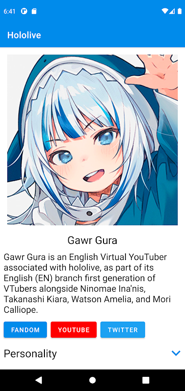 This app contains all the information about the Hololive Vtubers!
