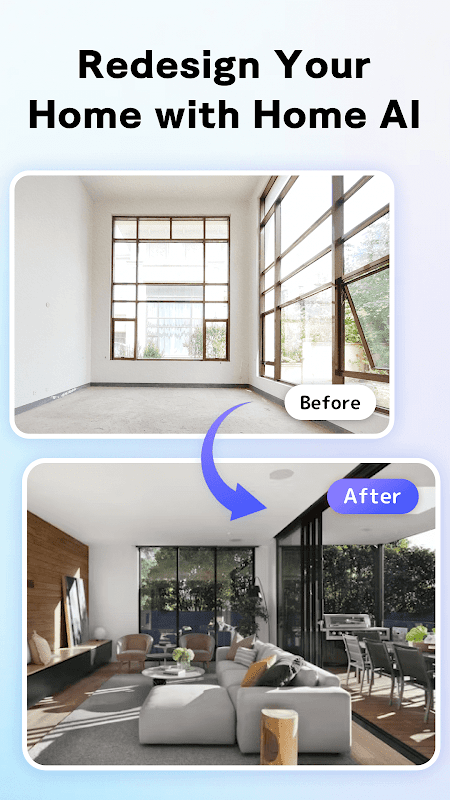 Home AI Design использует трансформацию искусственного интеллекта (ИИ), чтобы переосмыслить и преобразить ваш дом, улучшая ваш опыт проектирования дома!