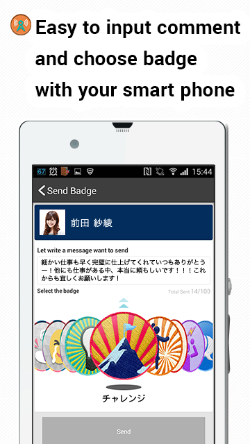 ■ The move, also Send One a badge from smartphones to easily during a break!