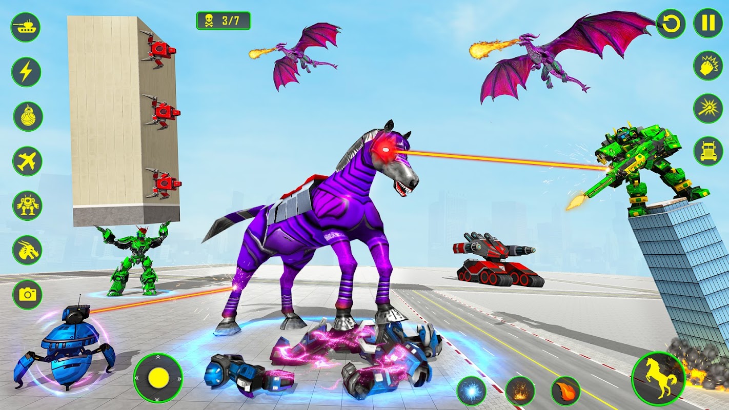 Военные игры с роботами-лошадями представляют собой смесь игр-трансформеров роботов-роботов и автомобильных игр с несколькими роботами-животными, которые предложат футуристические войны роботов на арене мехов со злым симулятором вражеских роботов. Механический гигантский робот или робот-пика будет наслаждаться захватывающими миссиями в современных играх с автомобильными роботами. Ваш опыт веселых поездок с роботом-чаппи будет на следующем уровне в недавно разработанных играх-роботах-змеях для миссий открытого мира в играх-трансформерах. Поездка на ракете специально добавлена для вас в этой игре с несколькими роботами, чтобы вы могли уничтожать врагов на Луне и становиться настоящим супергероем, например, автомобильные игры с роботами-акулами и игры с мега-роботами.