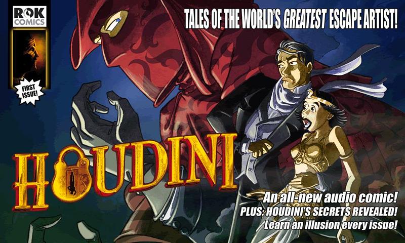Don't just read this comic - hear it! Rok Comics is proud to present the audio-enhanced adventures of the world's best-known escape artist Houdini, featuring a full soundtrack that brings the story added life and excitement - and includes exclusive videos revealing behind the secrets of two magical illusions!