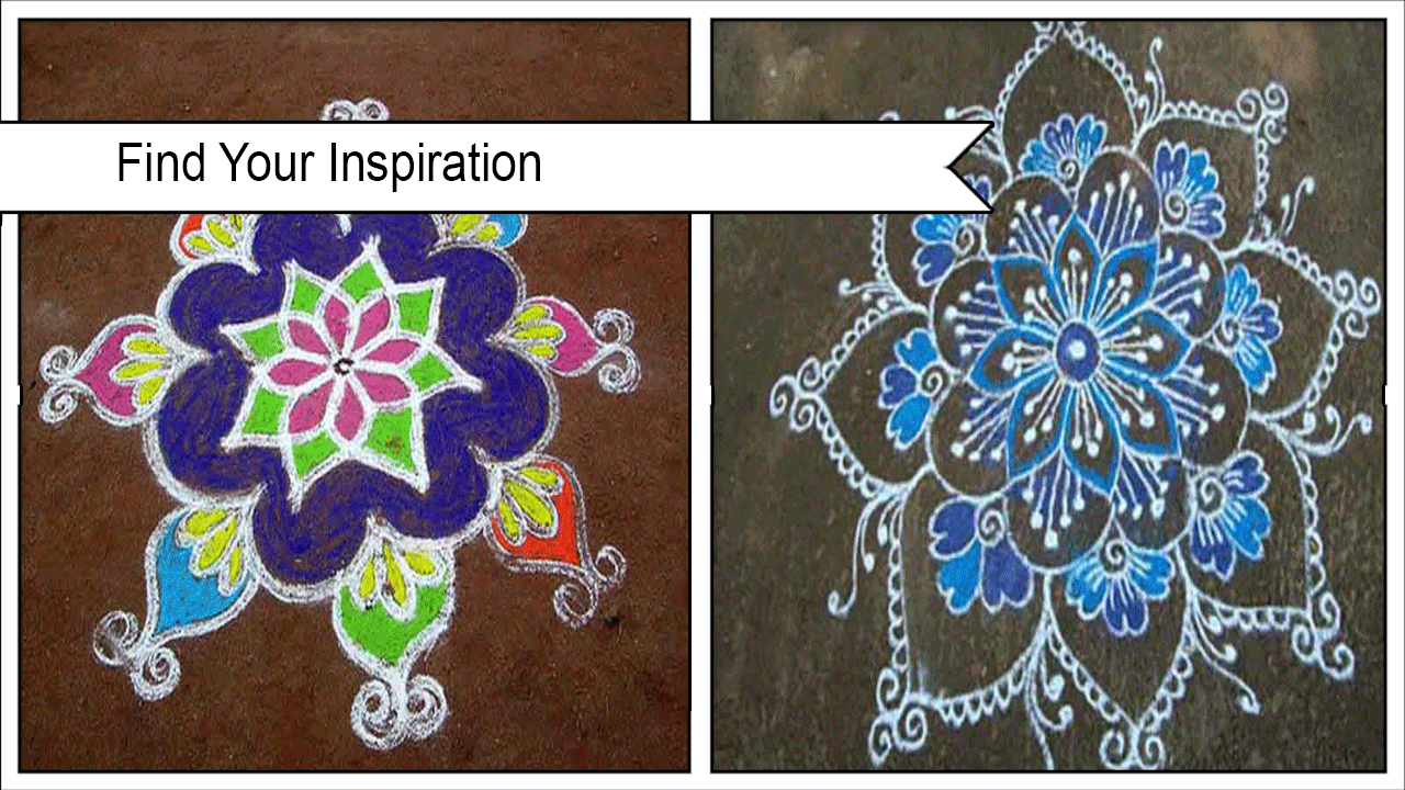 Вот простое пошаговое руководство, которое поможет вам начать работу. Вы можете попробовать несколько рисунков на бумаге перед тем, как попробовать их на полу. Мы подробно описали два стиля создания rangolis здесь, метод Four quadrants и метод Grid.