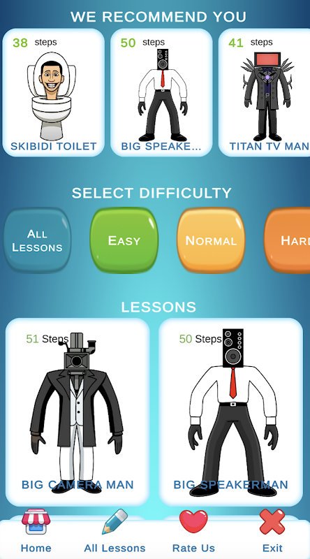 Как нарисовать Туалет Скибиди — отличное обучающее приложение, которое поможет вам научиться рисовать всех персонажей популярного мема за вечер. Все, что вам нужно сделать, это загрузить наши руководства, выбрать любимого персонажа и следовать инструкциям в приложении. Как рисовать Скибиди и Оператора - содержит большую коллекцию уроков, которые подойдут как новичкам, так и опытным художникам. Все, что вам нужно, это немного терпения, цветные карандаши или фломастеры и листы бумаги.