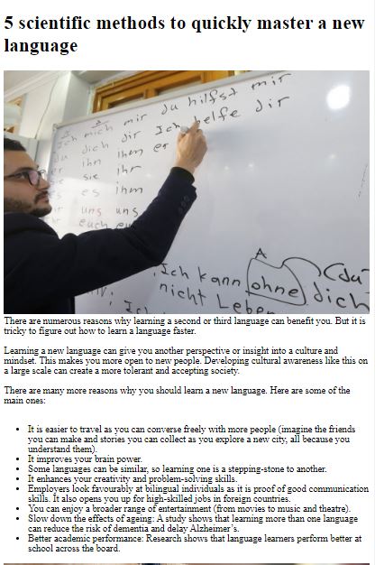Разговорная речь: тренируйтесь говорить вслух, будь то посредством разговоров с языковыми партнерами, ролевых игр или языковых занятий.