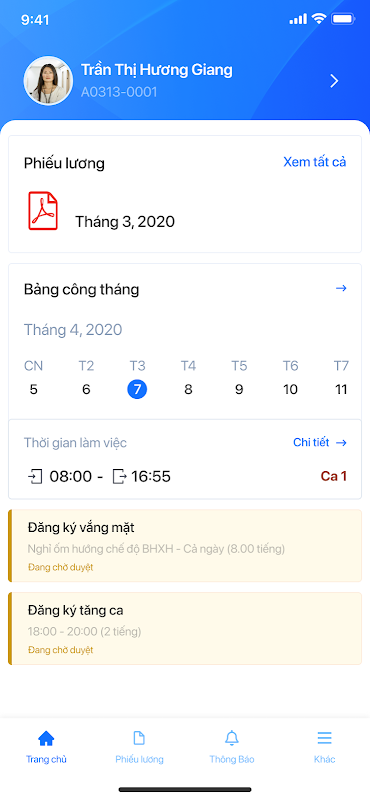 Это приложение позволяет пользователям управлять своим заездом / выселением, отсутствием и сверхурочной регистрацией. Кроме того, пользователи могут просматривать свою личную информацию и платежные ведомости, загружать изображения для бизнеса.