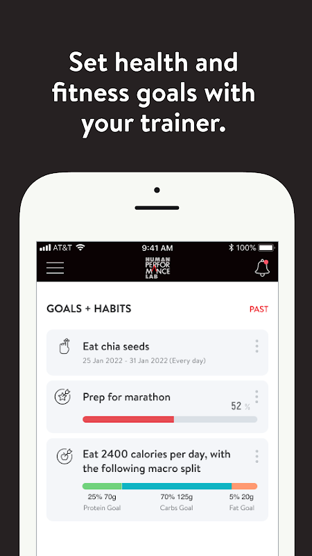 С приложением Human Performance Lab у вас будет доступ к программам тренировок, разработанным специально для достижения ваших целей в фитнесе и здоровье! Вы можете следить за своими тренировками, своим питанием, привычками образа жизни, измерениями и результатами — и все это с помощью вашего тренера.