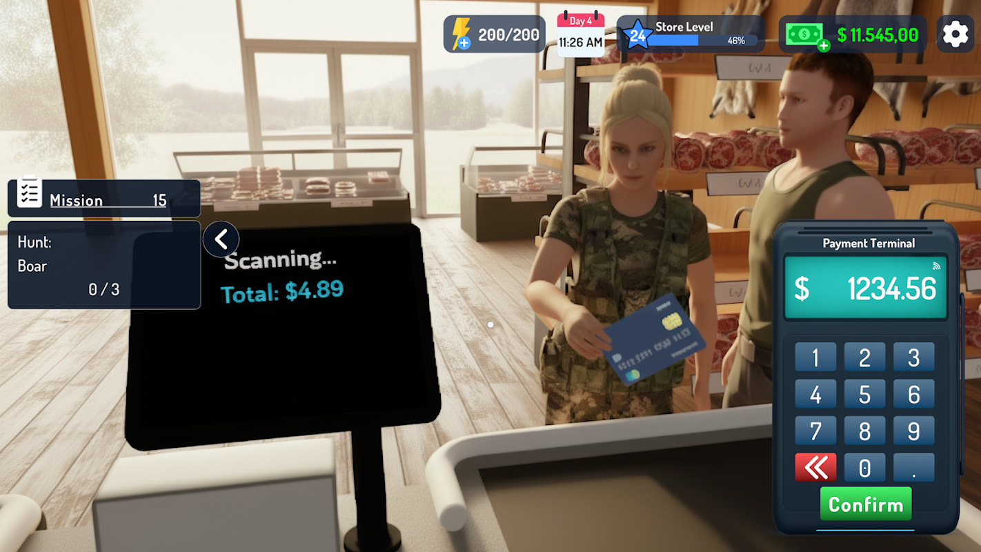 В Hunt Store Simulator каждая охота имеет значение. Выслеживайте животных, зарабатывайте добычу и превращайте её в прибыль, расширяя свой магазин.