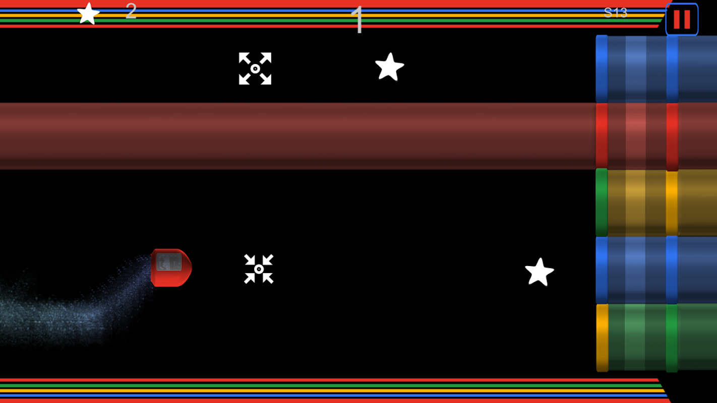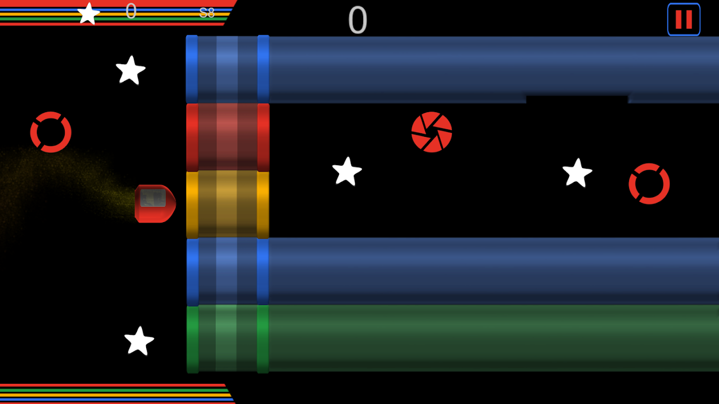 ◘ Be careful not to pass through the tube wrong color. Drive your ship through the appropriate color elbow. If you're wrong, you’ll have to start the level again.