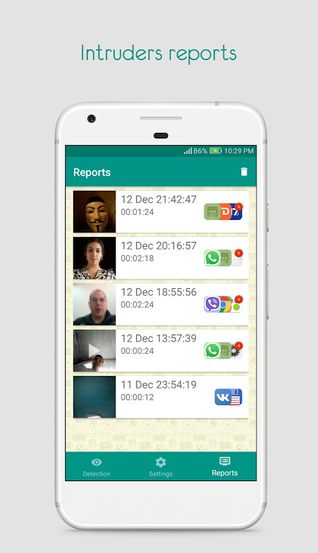 Хотите узнать, кто трогает Ваш телефон кроме Вас? Кто читает Ваши смс и сообщения в социальных сетях? Приложение IDetect позволяет пользователю следить за тем, кто разблокирует телефон или только пытается это сделать (ввод неправильного пароля разблокировки). IDetect показывает какие приложения запускал злоумышленник и сколько времени пользовался ими. Доступны режимы фото и видеосъемки нарушения. В итоге Вы получаете селфи злоумышленника, которое автоматически отправляется на Ваш email.