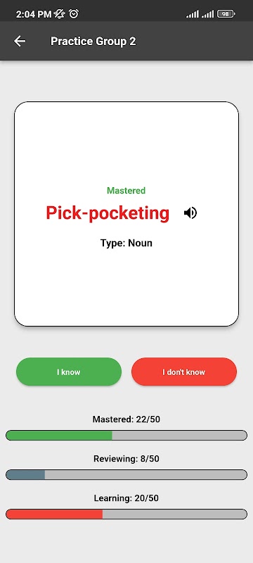IELTS Flashcards — это мощное и комплексное приложение, тщательно разработанное для улучшения словарного запаса пользователей и уровня владения языком, особенно при подготовке к таким тестам, как IELTS. Приложение революционизирует процесс обучения благодаря организованным карточкам, способствуя целенаправленному и эффективному улучшению словарного запаса. Пользователи могут участвовать в групповом обучении, способствуя сотрудничеству и чувству общности среди учащихся.