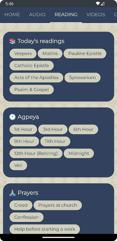 iLoghos bietet den größten Umfang and koptischen Inhalten an. Unter diesem Umfang befinden sich folgende Kategorien: Tägliche Ereignisse, Lesungen, Alhan, Taranem, Filme, Livestreams, koptische Sprache lernen.