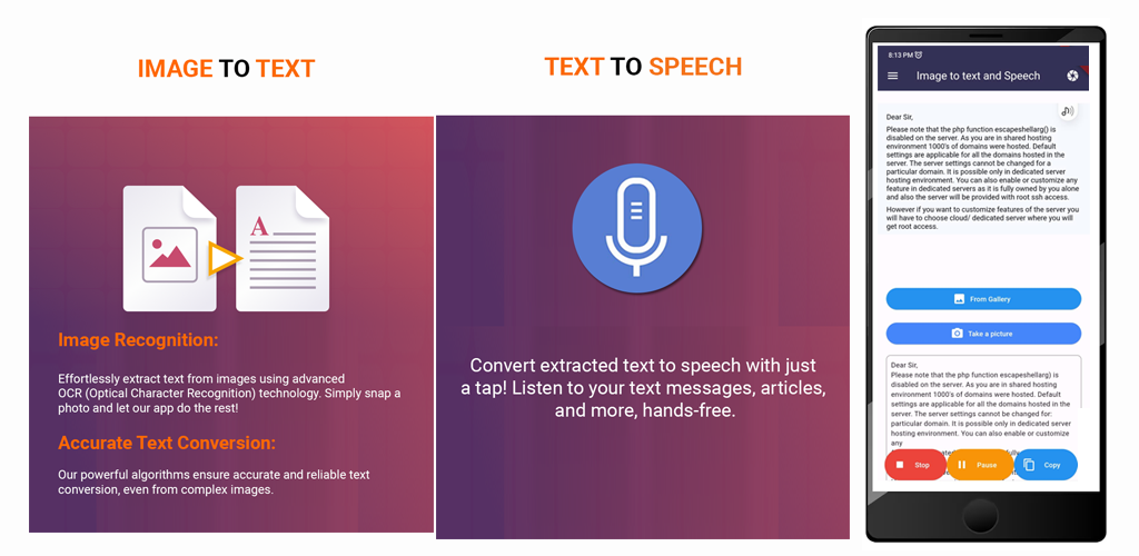 Преобразование изображений в текст и прослушивание их, преобразование текста в речь, распознавание текста, простой сканер документов