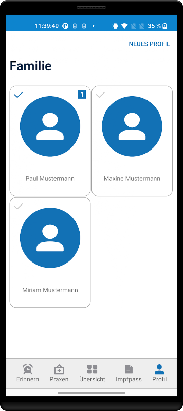 С помощью VaccinationPassDE Plus вы также можете создавать профили для членов семьи, вводить поездки для себя или вместе с членами семьи и получать соответствующие рекомендации по поездкам, а также получать напоминания о том, когда вам и членам вашей семьи необходимо сделать прививки. Благодаря функции «Семья» у вас всегда есть обзор необходимых прививок для ваших родственников и напоминание об отдельных пробелах в вакцинации. Также вы получите более подробную информацию о заболеваниях и прививках.*