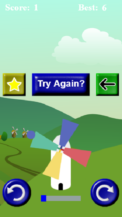 The aim of the game is to rotate the blades of a windmill to catch a matching color ball