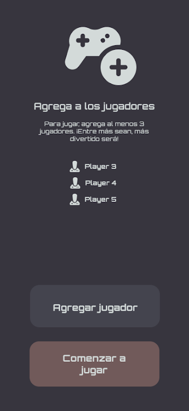 Минимальные требования: «Чтобы играть, добавьте как минимум 3 игроков. Чем больше, тем веселее!» (или «Чем больше игроков, тем веселее!»)