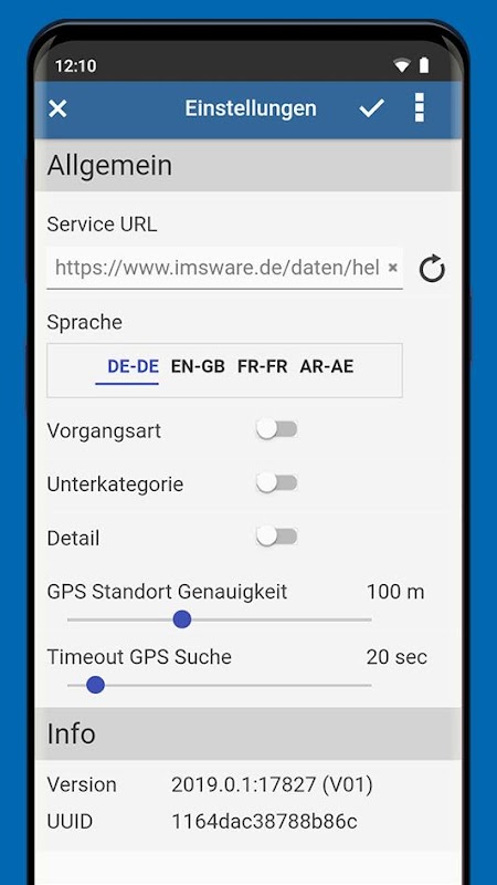 ---> Bitte legen Sie vor der ersten Nutzung Ihre "Service URL" in den Einstellungen fest - für einen Demo-Zugang senden Sie uns bitte eine Mail an [email protected]