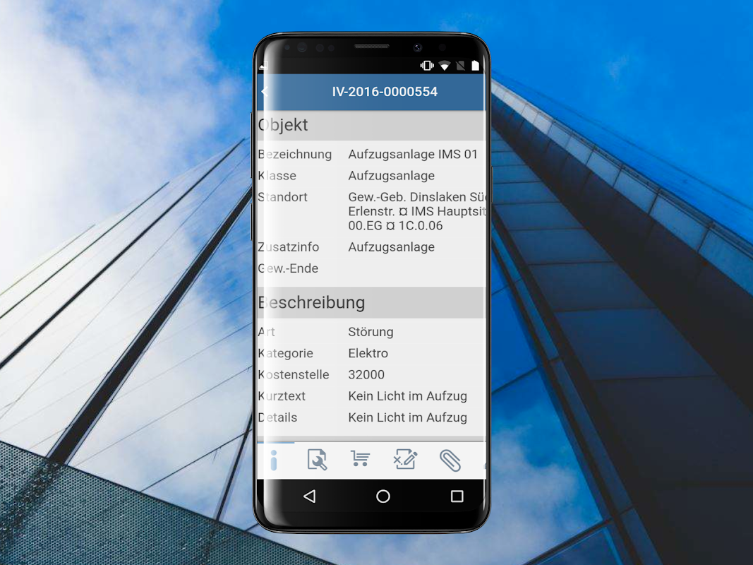 IMSWARE.APP Maintenance kommunziert per WebService mit Ihrem IMSWARE Server und ist in der Lage, Vorgänge aus der Instandhaltung, dem Wartungsmanagement oder Störmeldungen zu bearbeiten, Arbeitszeiten zu erfassen, Arbeitsaufträge zu quittieren, Checklisten abzuarbeiten, Aufgaben der Betreiberverantwortung wahrzunehmen, Unterschriften einzuholen, Vorgänge weiterzuleiten, Fotos zu erfassen und vieles mehr.