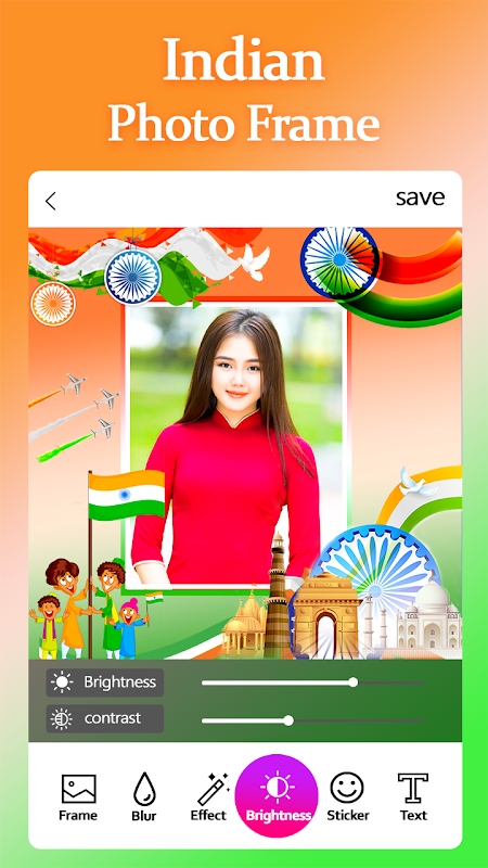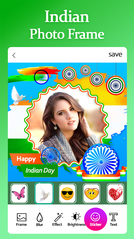 - Выберите рамки изображения индийского флага и эффекты, указанные в редакторе фотографий флага Индии.