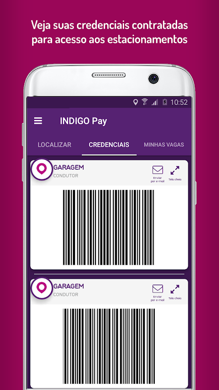 Assim que a vaga é contratada, o aplicativo gera uma credencial para acesso ao estacionamento.