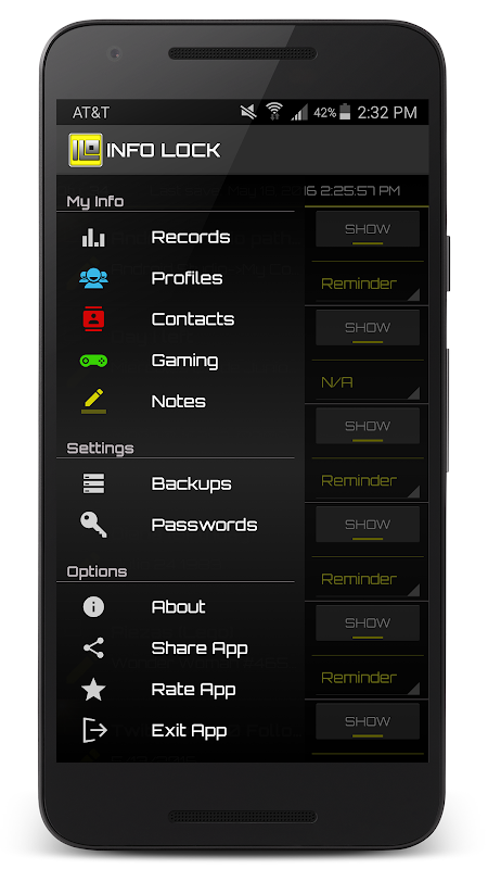 Info Lock: MAIN APPLICATION PASSWORD (Data Security)