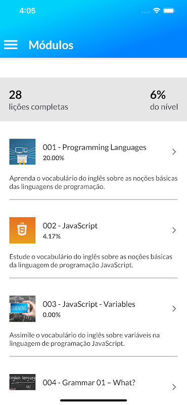 Приступая к изучению программирования, многие студенты спотыкаются об английский язык, потому что программы разрабатываются на английском языке, а словарный запас языков программирования весь создается на этом языке. По этой причине InglêsTEC был создан, чтобы помочь студентам-программистам и программистам усвоить слова, выражения и фразы, используемые в языках программирования, используемых для разработки веб-страниц, приложений и т. д.